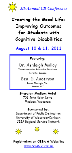 Wisconsin Department of Instruction "Creating the Good Life: Improving Outcomes for Students with Disabilities" Agenda August 10-11th 2011 Sheraton Madison Hotel, Madison, WI