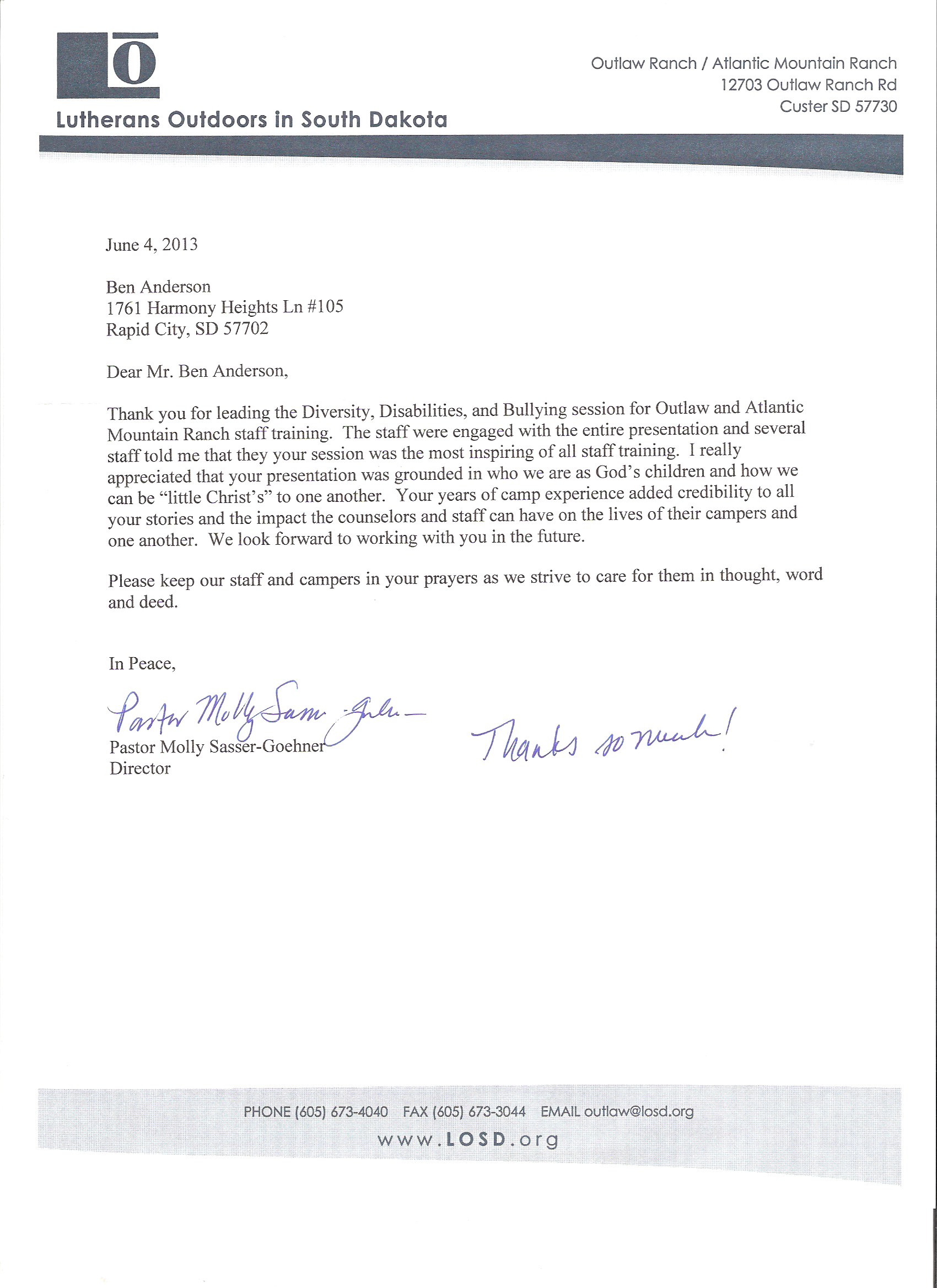 for Outlaw and Atlantic Mountain Ranch staff training. The